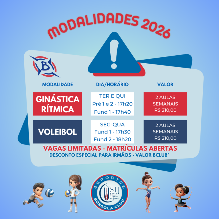 A Bússola Club lhes recebe em seu extraclasse, que é realizado no Colégio Santa Teresa de Jesus. Todas as atividades esportivas acontecem na segurança do espaço físico da Escola.